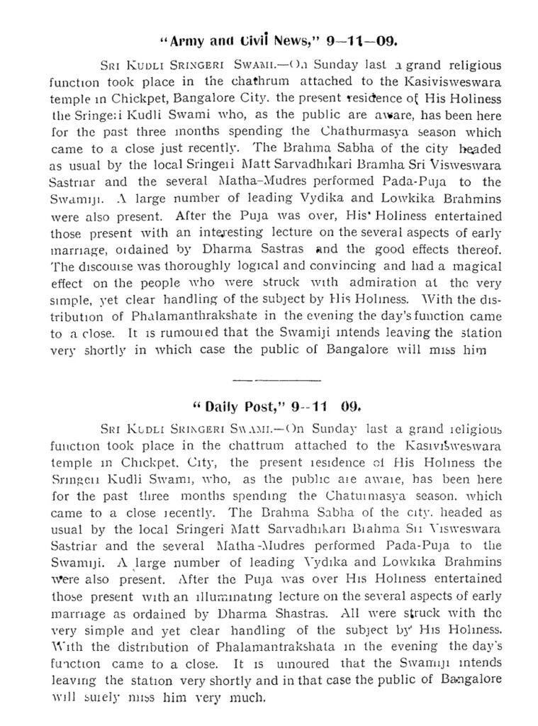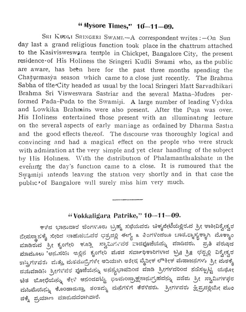 Upon selection, the new Swamigalu was provided advanced religious education and training similar to the arrangements made for the young Swami of the Shivaganga Matha.