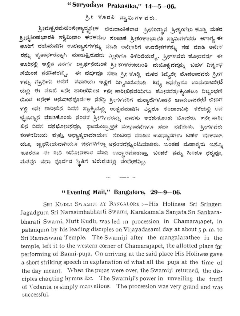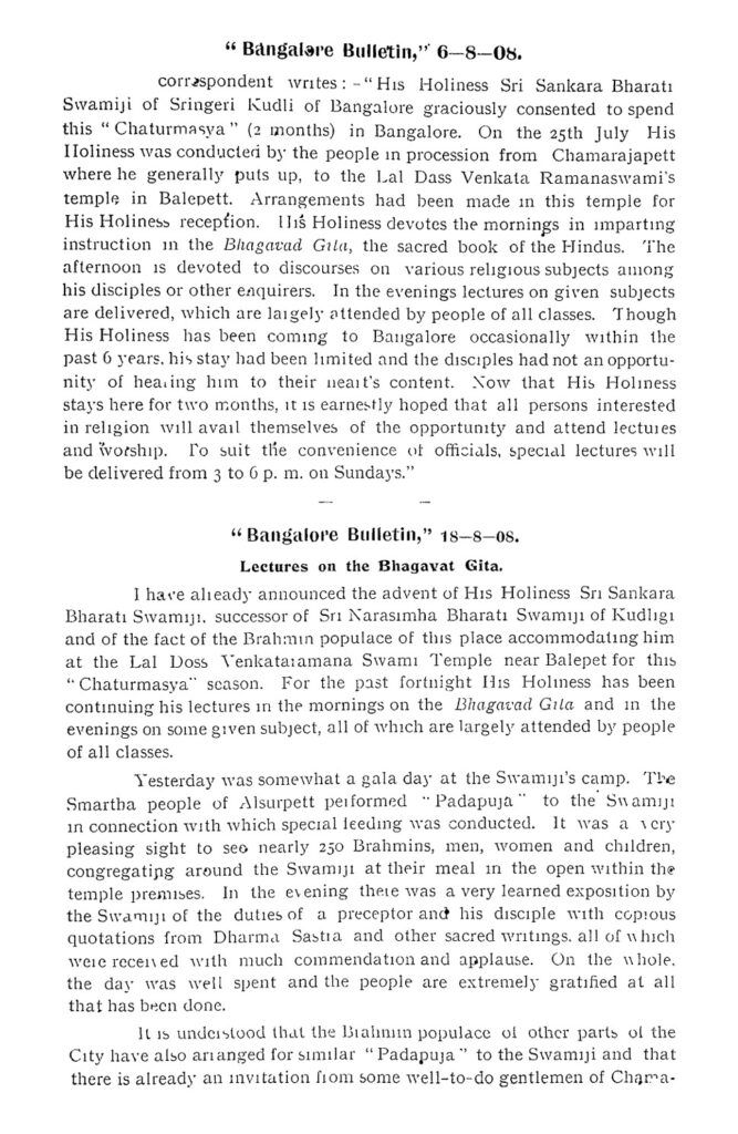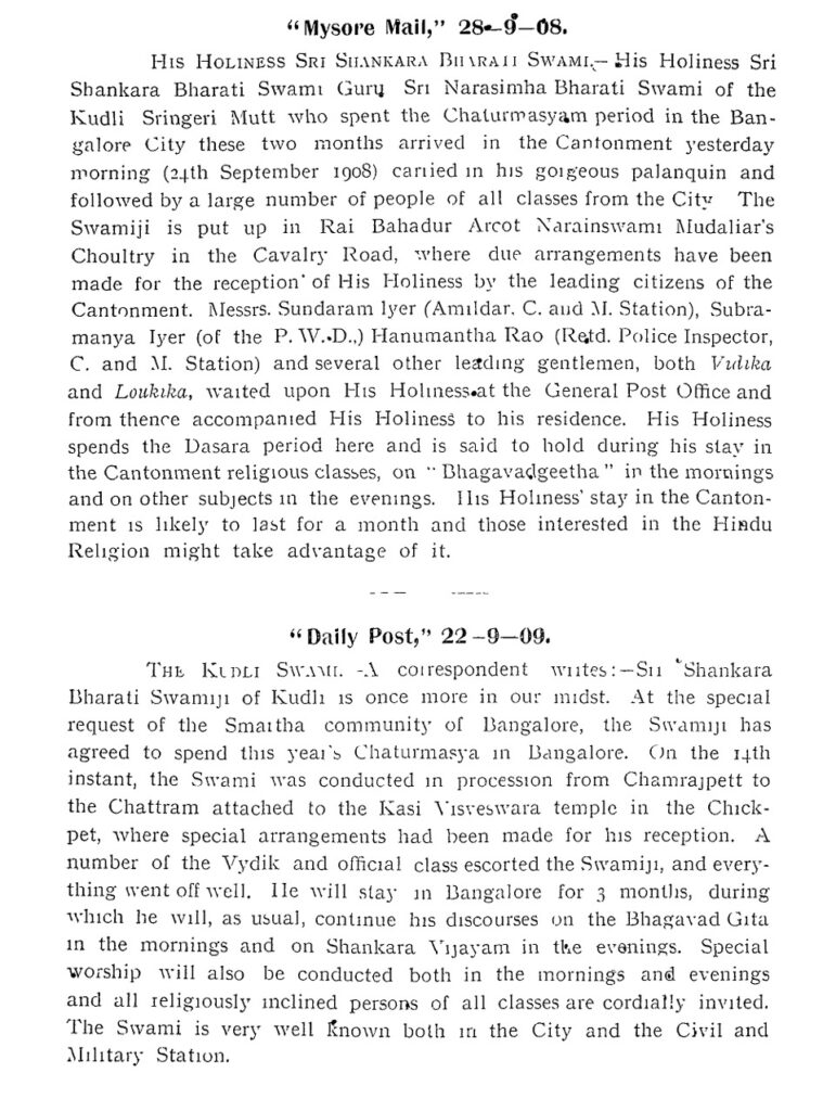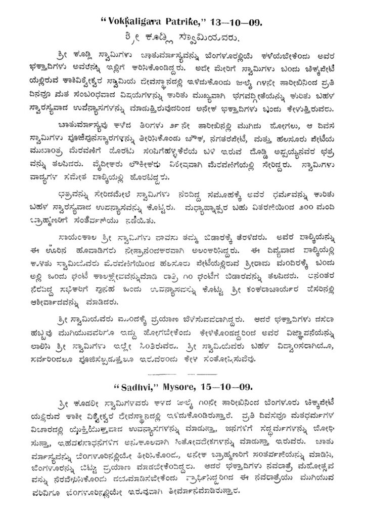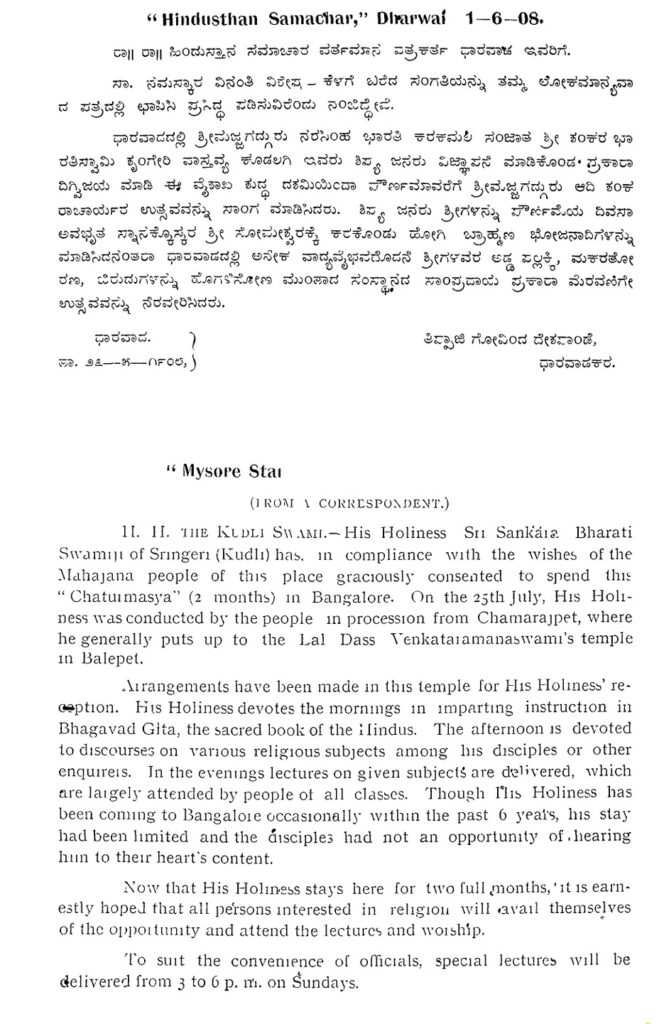 A committee of scholars and eminent persons periodically visited the Matha to observe his progress, and the Government further sought the guidance of Mahamahopadyaya Shri Virupaksha Shastri to assess and advise on his training.