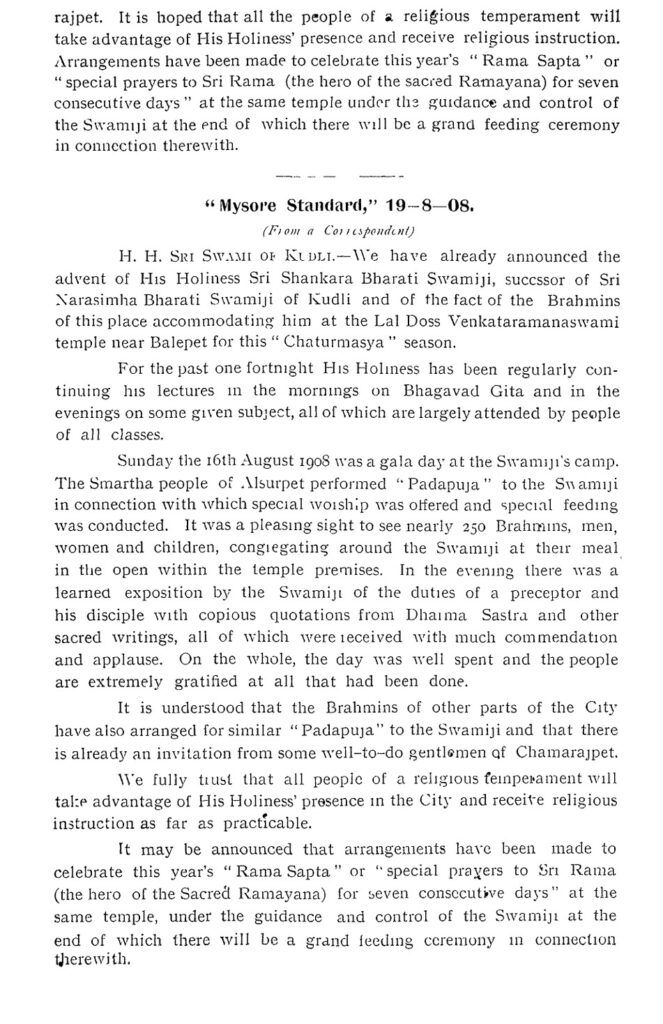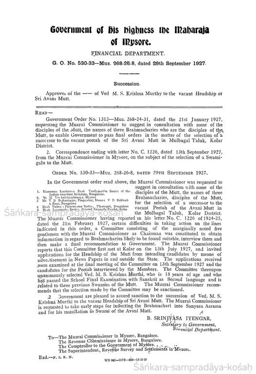 This stands as a classic instance of the Maharaja of Mysore discharging his paramount duty to protect an ancient Matha and its parampara, without outsourcing the same to any other external denomination.